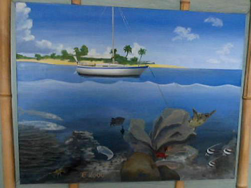 (dans le style naïf de Haïti) Gouache . Par Hervé Caumont. |